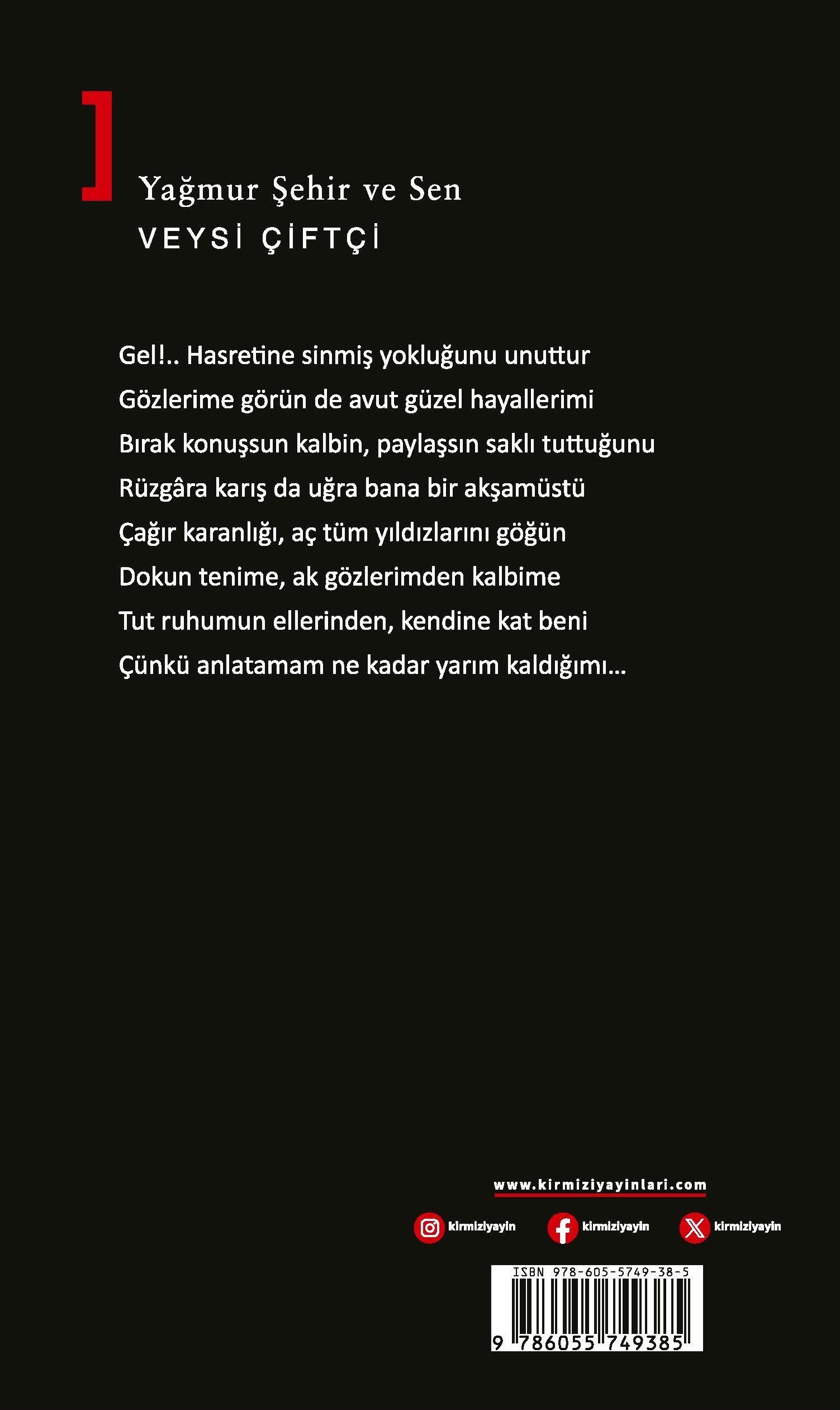 Bu kitap; hayata kayıtsız kalamayanların, herkesin yanlışına doğru diye tutunamayanların, huzurun eksikliğini fark edebilenlerin, bazen kalbiyle kavga edenlerin, aklıyla kalbi arasında kalanların “beni anlatıyor” diyebileceği bir kitap. Okur çoğu yerde kendini bulacak, kendinden bahsedildiğini zannedecektir. Bir kez kitabı eline alan, kendisi için alır. İkincisini, birine anlatamadığı duygular adına hediye etmek için alır. Raflarda durmak için değil, kalpte iz bırakmak için yazılmış bir kitap. Bu kitap, sadece aşkı anlatan bir şiir kitabı değildir; kalbin dizginlenemeyen arzusunu, aşkın insanda bıraktığı çatlakları, bazen suskunlukları, yanlışlara itirazları ve yarım kalmış cümleleri görünür kılan bir duygusal kayıttır. Şiirlerde, yüksek sesle söylenemeyen fısıltılar okurun iç sesiyle çarpışır. Umut burada yüksek sesle bağırmaz; sabırlıdır, derindir, vazgeçmez ve kalbin sitemi de asidir. Şiirler, karşılık beklemeden güzel sevmenin sessiz izlerini taşır. Birlikte susabilmenin, aynı cümlede durabilmenin, zamanın aşındıramadığı bağların şiirleridir bunlar. Aşkın koyu tonları vardır; çünkü gerçek sevgiler açık renkli olmaz. Üzerinden hayat geçmiştir, ağırlık yapmıştır, ama hâlâ sıcaklığını korur. Her dize, uzun bir yolculuktan gelmiş gibidir. Okurunu bir anlık duygulanmaya değil, kalıcı bir hissin içine çağırır. Çünkü bazı aşklar hızlı yaşanmaz; bekleyerek, sabrederek, yan yana durarak büyür. Bu kitap; yorulmuş ama inanmaktan vazgeçmemiş kalpler, sevmeyi hâlâ bir emek, bir söz, bir ömür hâli olarak görenler için raflarda bulundurmaları amacıyla değil, tekrar tekrar okunmaları umuduyla yazıldı.